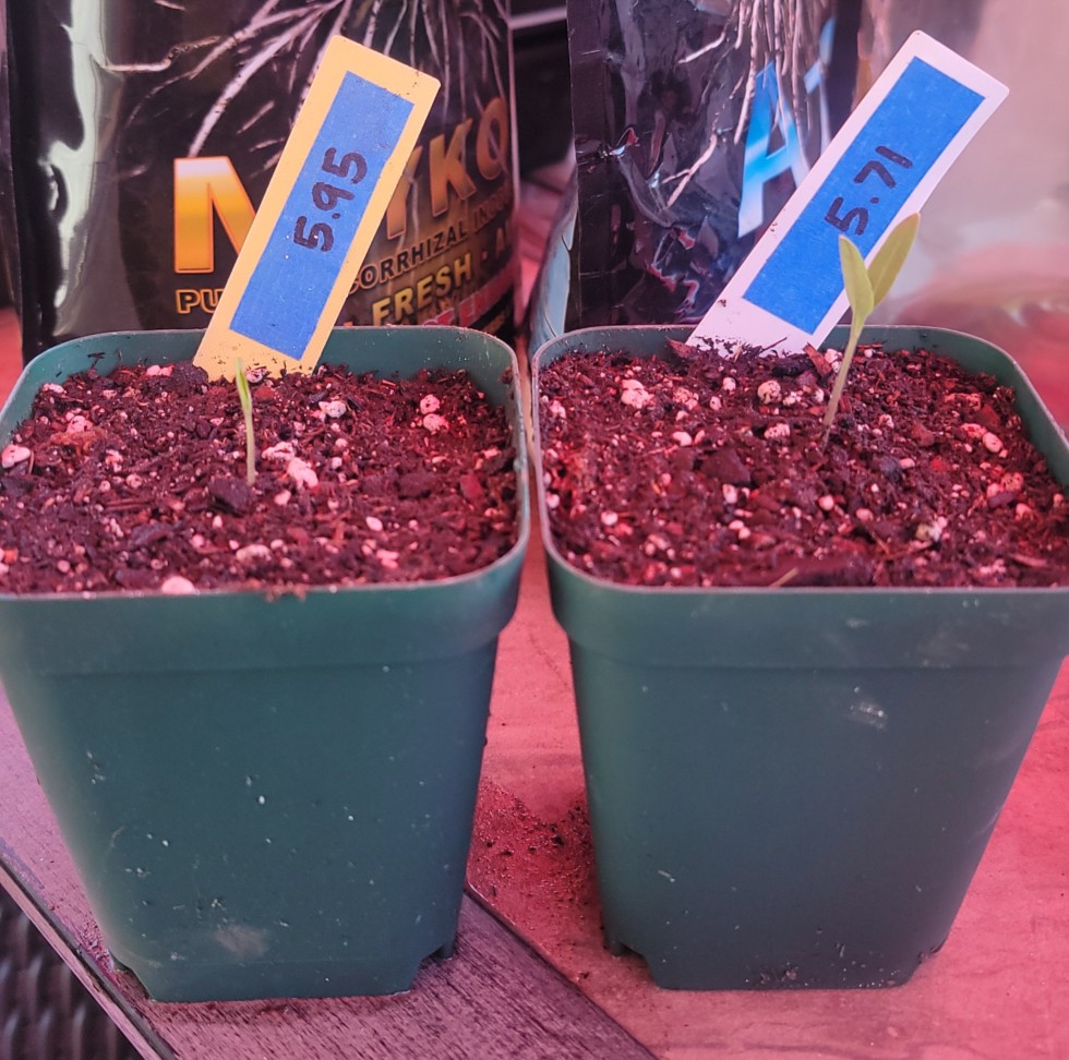 Both the 5.71 Lambchop (2018) and 5.95 Konieczny (2016) seeds have germed giving me a chance to create what I consider to be an epic genetic cross.