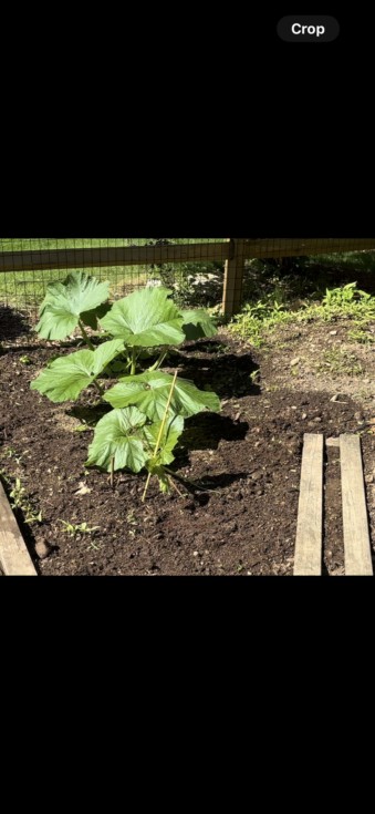 Plant is growing well! First baby pumpkin showing. We will most likely let it bloom then take it off. Need to get the plant a little bigger. Aiming for 15+ secondaries behind the fruit.