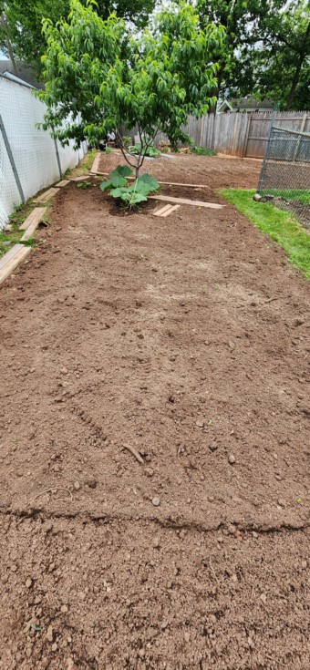 2222 Geinger x Self 150sq feet plant is a bit slower. Main ia about 5 feet long. Has 4 secondaries that appeared but haven't started to take off yet. Tilled patch today. Sprayed foliage with all seasons horticulture oil.