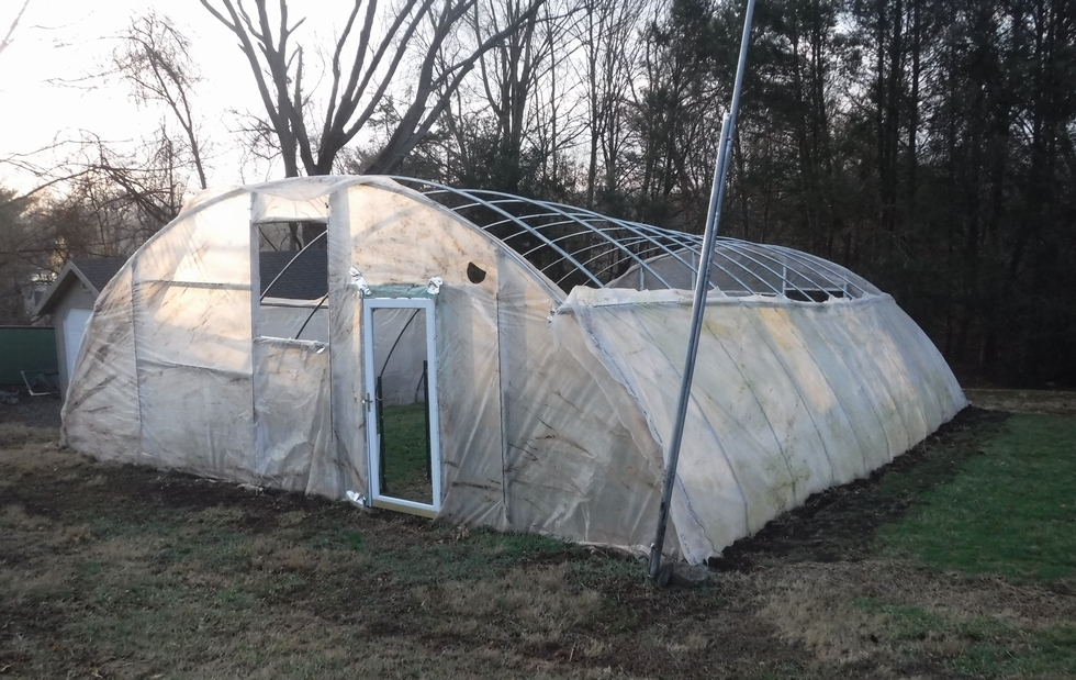 Notice that there is no "roof" plastic. This is because instead of one large sheet three are used, two on each side and then one central "roof" plastic piece will be put on. However, this is the largest and most difficult so not only does the weather need to cooperate, but having access to a few extra hands is also welcomed. just in case😉
