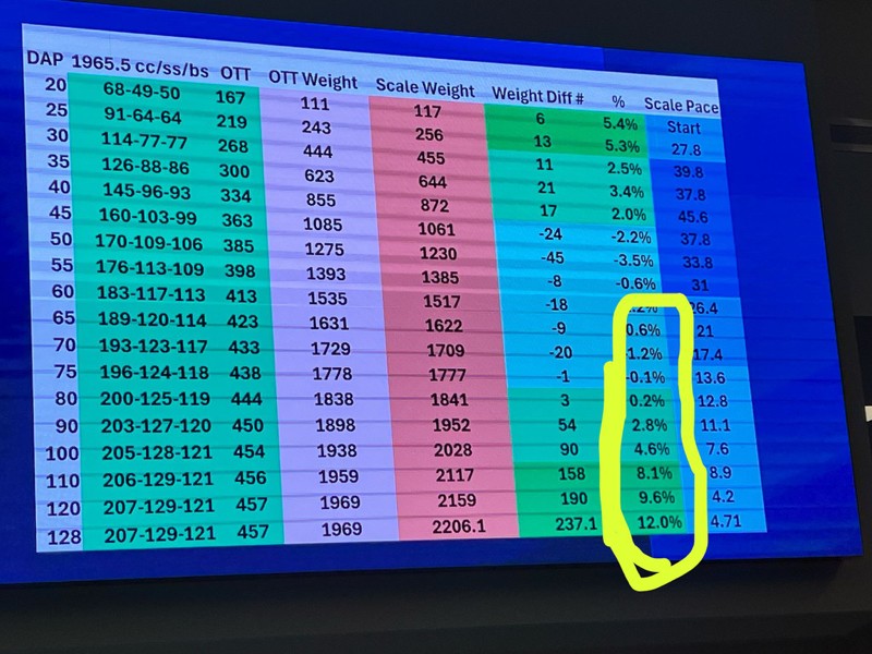 We have always seen growth at least to DAP120. Chis's great work on pumpkin growth is the reason for leaving them in the patch to at least DAP130. Thank you all for the kind words we appreciate them all but we want the World record