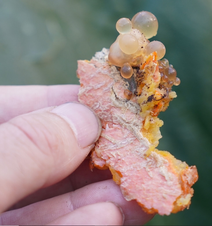 This can certainly be added to the list of. "Odd things that can happen to a giant pumpkin." While I have seen many things, this is certainly a new one and to have developed sub-dermally is also interesting with no signs of a potential issue leading up to this problem also makes it a little scary about when it could happen.
