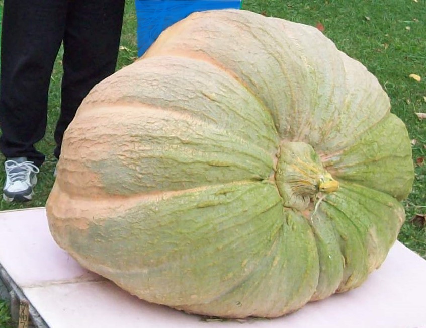 551 Gerry 2025 (940.6 Gerry '20 X 443 Gerry '14), which is (1207.4 Young X 1421.5 Stelts). That PumpkinFanatic 'site really comes in handy! I'd'a had '(Prizewinner X Open)', lol! The GREEN on the stem and stem quadrantal area is mostly caused by ALGAE/seaweed that has lingered in my drench water barrel(s) for about 10 years; For all WE know, it may be very beneficial, but I don't want to sway buyers of it either way. It can easily be ERadICated with 2 Tbsp. of Clorox per gallon of water, IN THE barrels, only(!), lol---eg