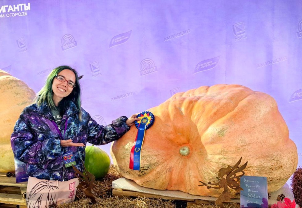 And indeed, the pumpkin went "to work." Namely, to the giant vegetable exhibition in Moscow. But at first - the long-awaited weighing. On September 19th, 2025, at the Apothecary Garden, the pumpkin was weighed. 402 kg! Hooray, the 400 kg mark was passed! And this was on 15 square meters. I was so proud of my boy, my Gorky Park. For me, he turned out to be like a ray of light in a dark kingdom. Amidst the bad news and chaos happening around.