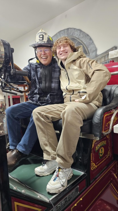 Luca and I on a restored 1914 fire engine.