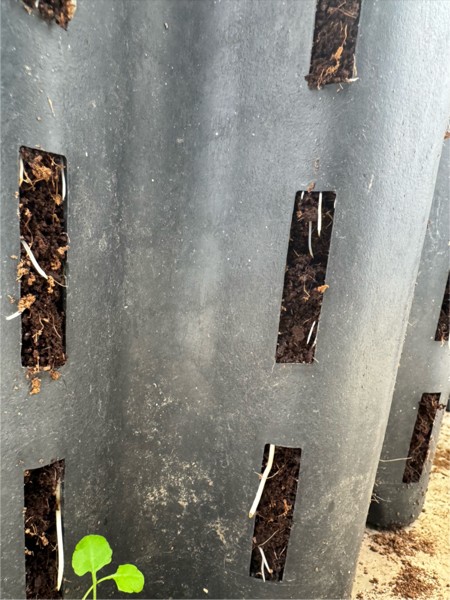 A bit boring but I have roots poring out of my 90l onion air pots.