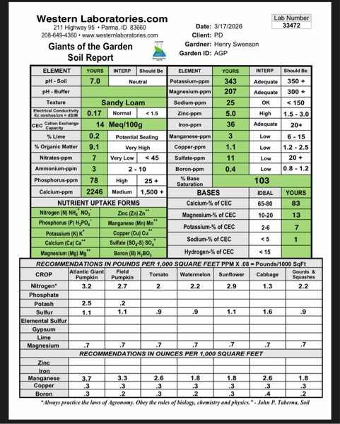 Got my soil test back from western labs. Pretty happy with it! Some things to work on but not a bad test to start the season
