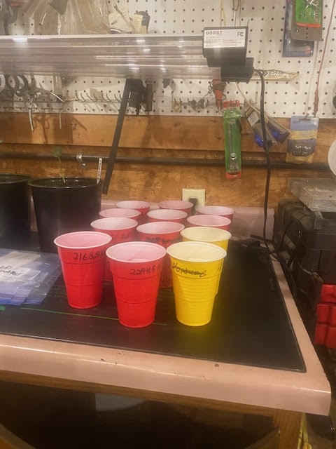 Okay it didn't take that long started 18 seed, 6 for me 6 for back up. 6 for some friends that think I have gone crazy. maybe I can pull them over to the dark side.It helps to have a plan and mark cup ahead of time.got that done and marked ziplock bags for Saturday morning.