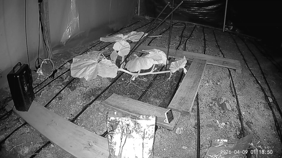 Here's a night time photo. The vine is laid down and starting to run on my 1365. This is the best start I've ever had, and I'm hoping this keeps up. I'm doing a lot different this year, but some things remain the same. In the category of "same,"Soil heating cables are in and turn on at 70*, off at 75*. I am still hand watering, but that's going to change soon.