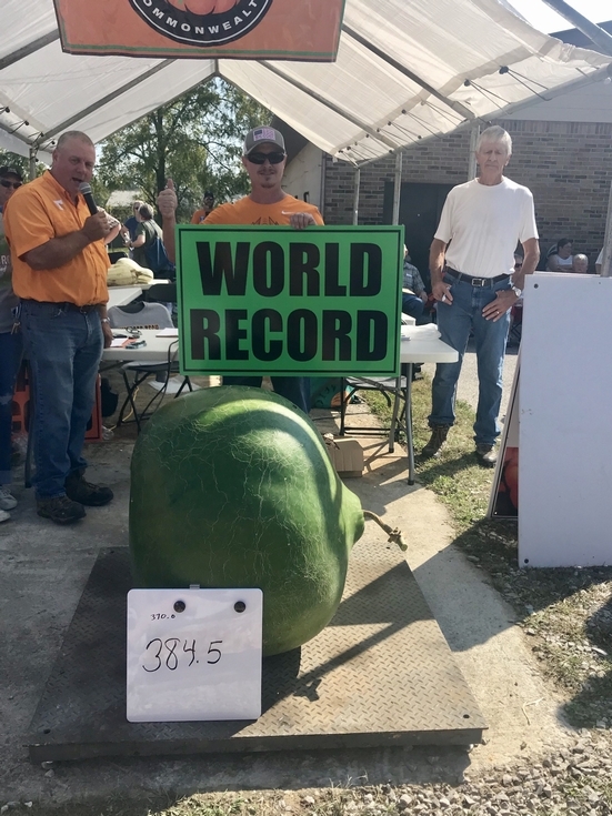 2018 - Jeremy Terry and his 384.5 pound World Record Bushel Gourd!