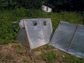Jim uses these custom made greenhouses to protect his seedlings in the early part of the season. This is New Hamshire so the Spring can be pretty cold. Notice the ventilation holes on all sides to prevent them from getting too hot.