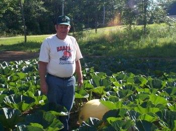 This is Charlie and his 678 Ciliberto plant with the biggest pumpkin in New Hamshire at the time. We later learned that this particular pumpkin went down. Sorry Charlie!