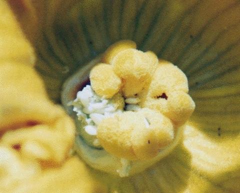 I have had many Giant Pumpkins and Squash with seeds in the blossom behind the "stigma". Those tiny seeds belong in the fruit and your fruit will develop slower in the area where those seeds should have been. Most of the time the area slow to develop is near the blossom end. I remember a Squash in 1991 that had many seeds behind a segment at about 2 o'clock as viewed from the blossom end. As it grew a huge depression resulted the entire length of the Squash. It split in the depressed area at 539 pounds.