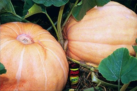Pictured are two hitting the scales at 181 lbs and 171 lbs respectively. It's too late to slide aside the vine that provides their nurishment - they are dangerously close to cutting themselves off, good lesson for next year. Gary