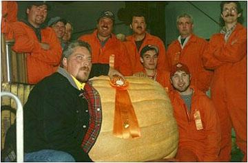 Wilbur weighed in at 633.5 pounds and took fourth place. Congratulations Ernie! The men in orange are the pumpkin handlers!