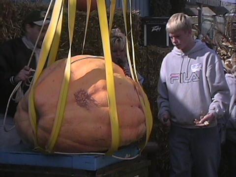 Here is Scott watching the weighing of his pumpkin. His came in at 348.5lbs. & took 13th place.