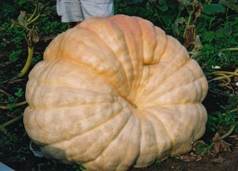 This pumpkin was grown on the 712 Kuhn 2000 and pollinated with the 805 Pukos 2000. It spilt on the bottom when we were loading it for the weigh-off.
