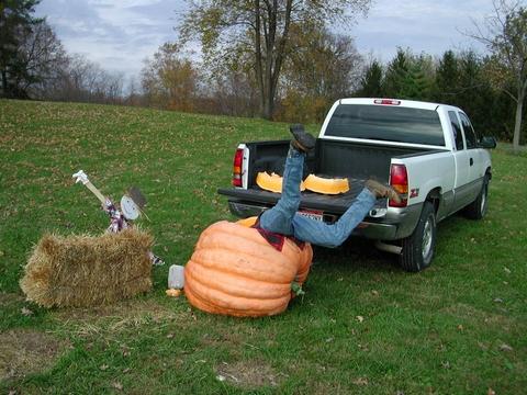 first snowman with pumpkin