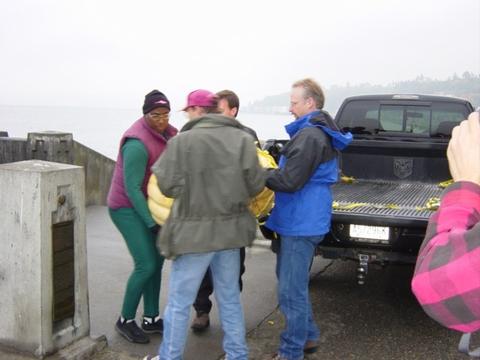 Unloading Chris Michalec's pumpkin for an the attempt at an Underwater Pumpkin Carving Record.