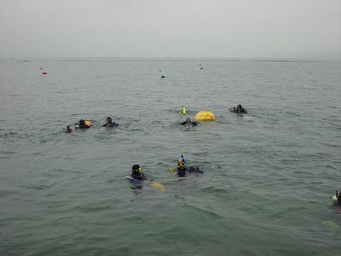 Taking the pumpkin out to deeper water for an attempt at the largest pumpkin ever carved under water.