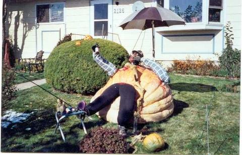 My Halloween "carving", if you want to call it that. Caught a lot of peoples attention. Had hole drilled up from cavity to head area and a pvc pipe connected from a humidifier up to the mouth area. When humidifier was activated, "monster" actually appeared to be smoking the cigar sticking out of it's mouth. My most creative effort yet. Would you expect anything less from the madman?