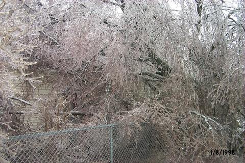 Here's another view of the tree that fell on our mini van. I still can't really tell what damage there is to the house until I get rid of the tree.