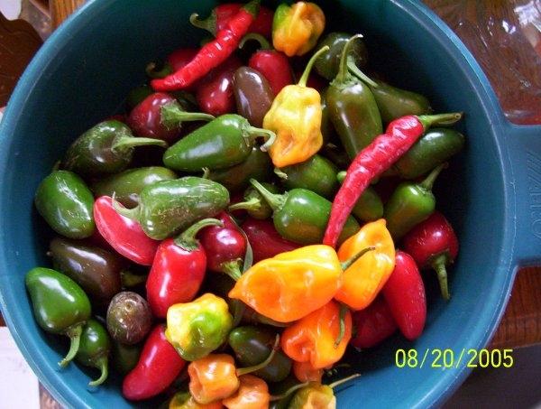Some my hottest. Habeneros, Cayennes, and red and green Jalapenos. I made a mix of these and pickled them. Oh Baby...