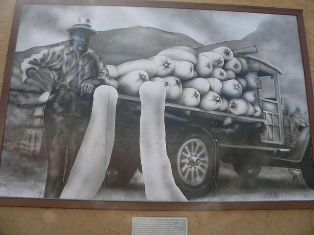 4 seeds valued at $1.00 each were sent here (from Italy) in 1938 and production got underway reaching a peak year in 1947 with more than 1400 tons grown. This industry was short-lived because not only was the drain on the soil from these giant melons disastrous, but once the war ended the demand for the candied peel produced from the Zucca Melons diminished.