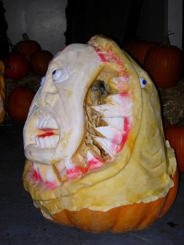 this carving took two hours to create face took one hour and shark took the other hour . this was done at six flags great america . this carving was one of my best carvings that i've done this year. this picture