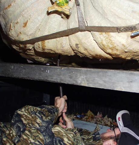 As far as we know, the first ever bottom entry with the pumpkin dangling overhead. Here I am with the crowbar trying to get an access hole to fall.