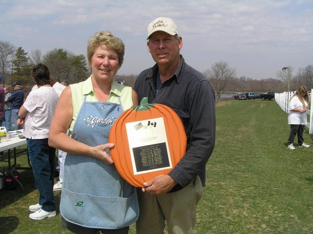 A beautiful day at the SNGPG Meet and Greet at Frerich's Farm on April 15, 2006, and Barbara and David Frerich show the Top 10 GPC Site award presented to them earlier in the day.