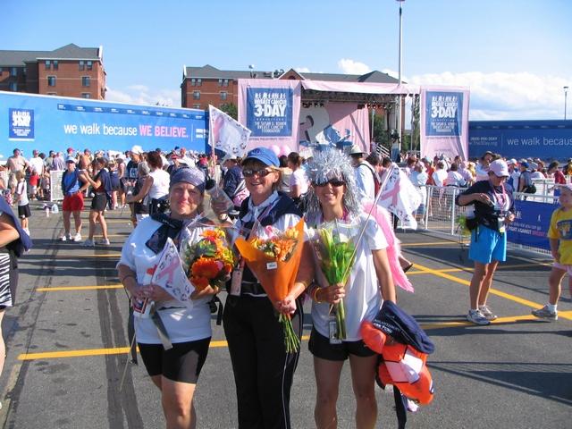 Carissa and buddies at the completion of the walk. Many thanks to Sue Beauchemin (in the middle) for all the support and comforting she provided. Alyssa another friend (on the right) rounds out the group. These three worked together in harmony to make it to the end.