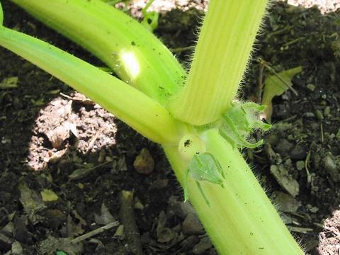 This node and others have twin flowers. This is the only one with a male and female flower.