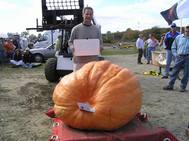 Edward Pappas of Marshfield, MA stands by his beautiful orange 773 pound Giant Pumpkin at the 2006 Frerich Farms SNGPG GPC sanctioned Weigh-off on Oct 7th.