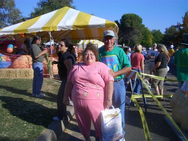 At Elk Grove, CA, Gary Miller celebrates his new 1280.5 lb. CA State Record with one of his pumpkin groupies.