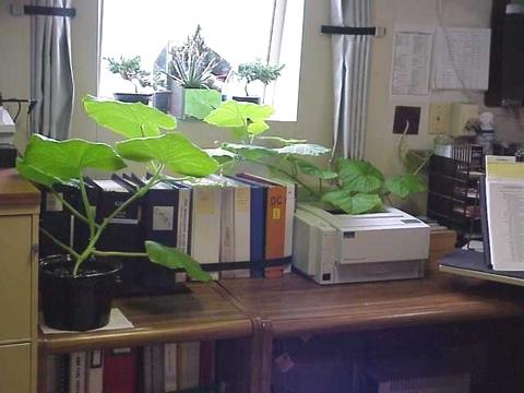 My dad is raising a pumpking plant from a seed of my giants from last year on his ship! The massive office plant is taking over his desk and his book shelf. It is probably the first pumpkin plant ever to be raised in the Atlantic ocean!