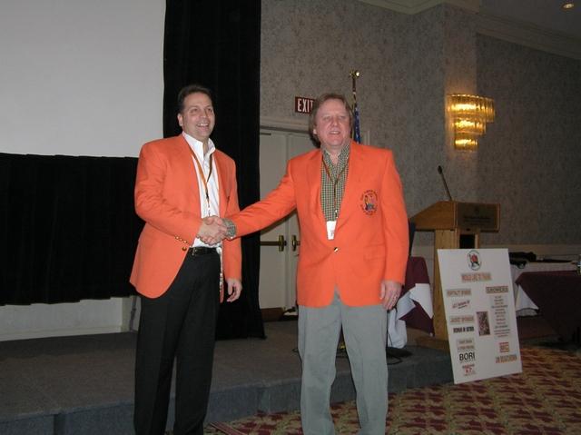 2005 Champ Larry Checkon shakes Ron Wallace's hand for 1502 2006 World Record Giant Pumpkin at Niagra CANADA convention
