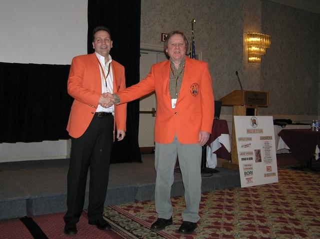 Larry Checkon Congratulates Ron Wallace, the 2006 World Record winner, for his 1502 Giant Pumpkin at the GVGO seminar. March 2007
