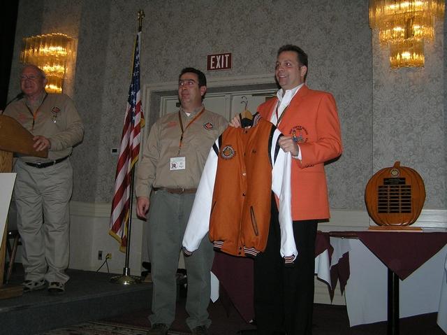 This was definitely Rons year. Here Dave Stelts, presents Ron Wallace, with his "Grower of the Year" Jacket, for his winning top three GPC entry average. He brought an 1140, 1347 and of course 1502 pound Giant Pumkpin to three different weigh-offs this year, to win this GPC sponsored award.