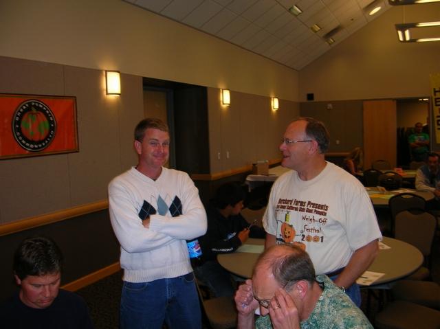During the lunch break Russ Pugh and Jack LaRue discuss growing techniques. Thats Russ Pingrey and Chuck Veader in the foreground.