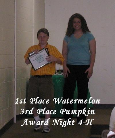 Tyler getting his awards for the watermelon and pumpkin contest last year.