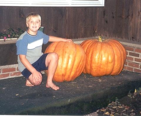 Alex with home grown pumpkin on his 2nd halloween 1year 2days old
