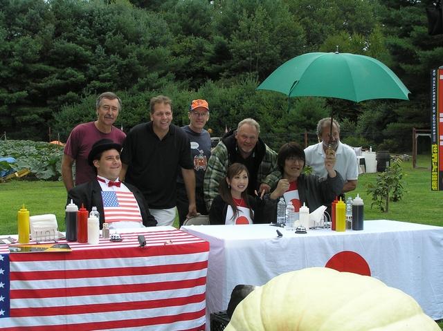 Some of the SNGPG gang hang out with some of the Giant Pumpkin food eating contestants at the Wallaces Patch on August 21, 2007. In the back, left to right, that's Joe Jutras, Ron Wallace, Steve Connolly, Dick Wallace and Steve Sperry