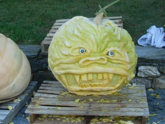 this pumpkin plus others were done at longwood garden in pa this weekend me and linda another pumpkin carver.Carved thes cool looking pumpkins