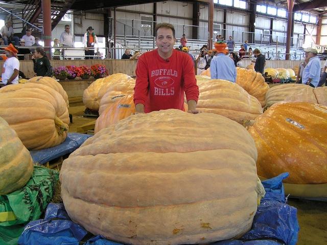 Ron Wallace is shown here with his pumpkin that weighed 1470 pounds at the 2007 Topsfield Fair. It weighed 14% heavy and came from a 1502Wallace06 x998Pukos05 cross.