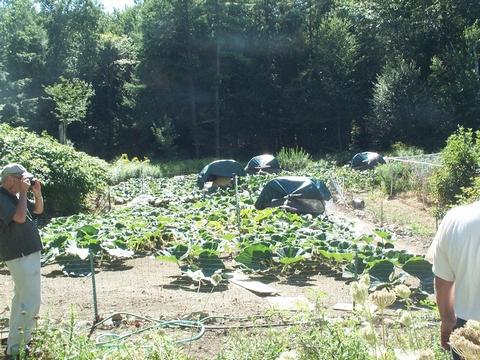 Some of the plants and shade structures in Jim Kuhn's patch.