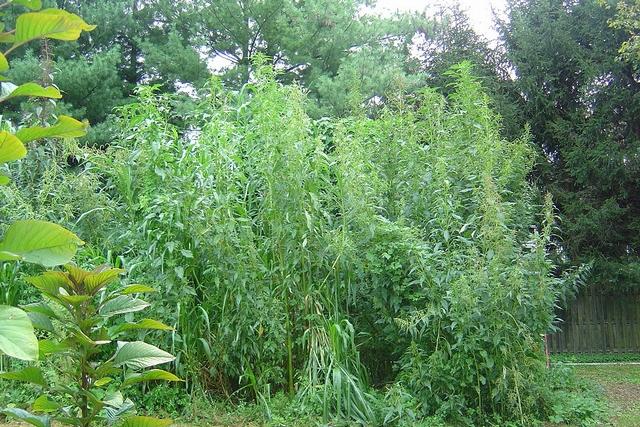 You can see the 10 ft. ladder in the right corner for comparison. Tallest plants in the far back are tidalmarsh X giant amaranth crosses. Those plants are about 20-21 feet tall. Hard to get a good picture of them because they have a very narrow growth habit. The plants in the front are a mix of pure giant amaranth and self-sown tidalmarsh X giant amaranth crosses. The red amaranth in the background on the far left is a sterile A. hybridus X giant amaranth cross.