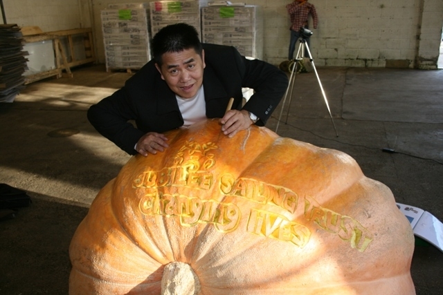 all my carving work you can see in my old website www.uniqueartu.piczo.com www.uniqueartzone.piczo.com i would like to carve the biggest pumpkin in the world when the people get the world record of the pumpkin for guinness world record i would like to carve that pumpkin if people can sponsor me to carve that pumpkin to do charity for the children that be nice i would like to carve my unique carving art into the biggest pumpkin in the world the 1040 pound pumpkin is my first biggest in this 30 year carving i like to carve more biggest at the moment there are 1725lbs pumpkin in your website i see if i can carve that that be good maybe next year some one can get much biggest hope i can get sponsor to get my hand to carve it thank melon man