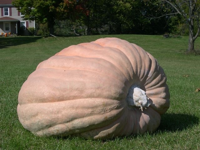 This is the 1117Crosby09. The cross was 1263Speakman07 x 990.5Crosby07. This pumpkin was 10% heavy and was sound inside with no cracks or dill rings. Weighed in 5th place at New Breman Pumpkin fest.