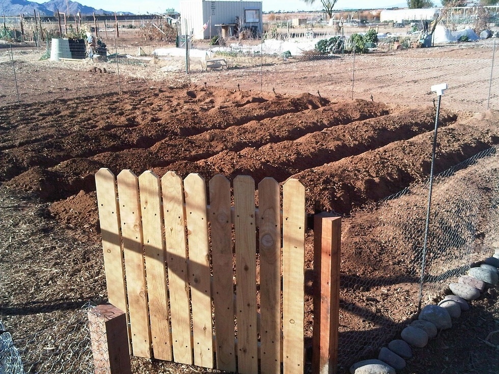 North of two connecting plots in Community Garden